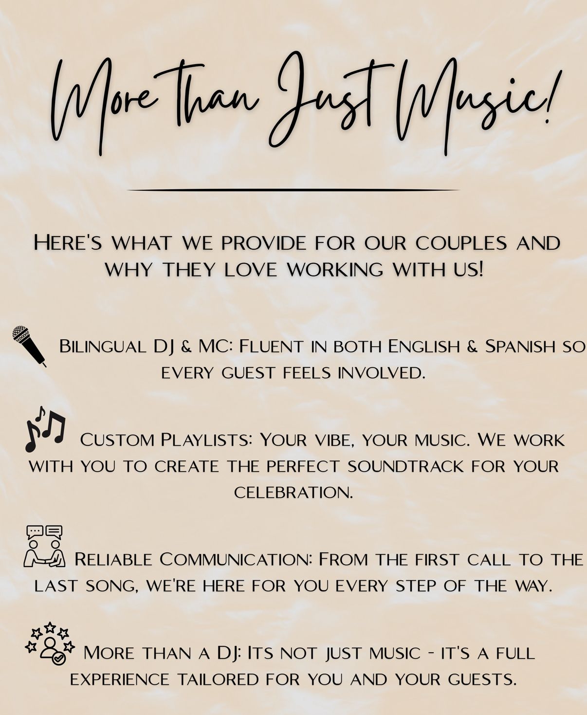 From the Grand Entrance to special dances and every important moment in between, we deliver all announcements clearly in both English and Spanish so every guest feels included and connected.